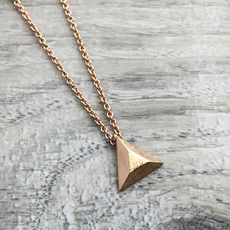 Description - Brushed triangle necklace- Plating on brass- 16" length approx. Additional Details SKU: R-N431