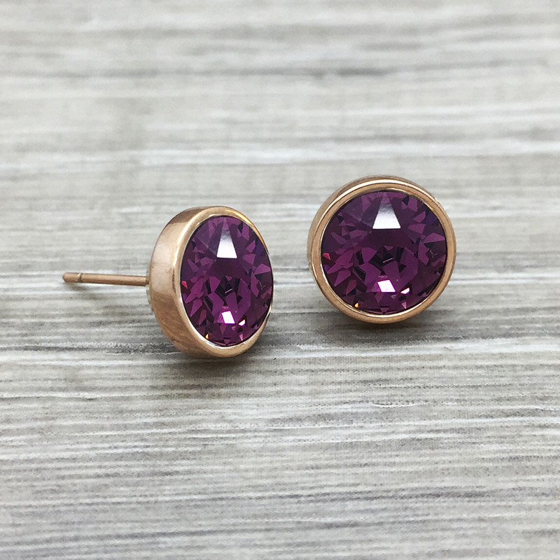 Description - Luxe Swarovski stud earring- Stainless steel- Hypoallergenic- 11mm approx. Additional Details SKU: R-3E64-RG-AMY