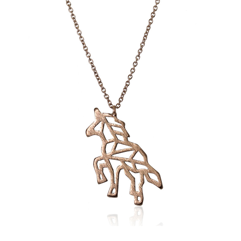Description - Leaping Unicorn Origami Necklace- Brushed Stainless Steel- 17" + 2" approx. Additional Details SKU: R-7N17