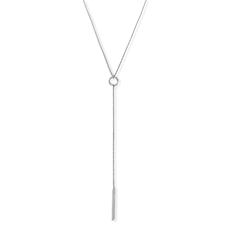 Description - Open circle & bar drop Y-necklace- Brushed stainless steel- 26" + 2" length approx. Additional Details SKU: R-4N418
