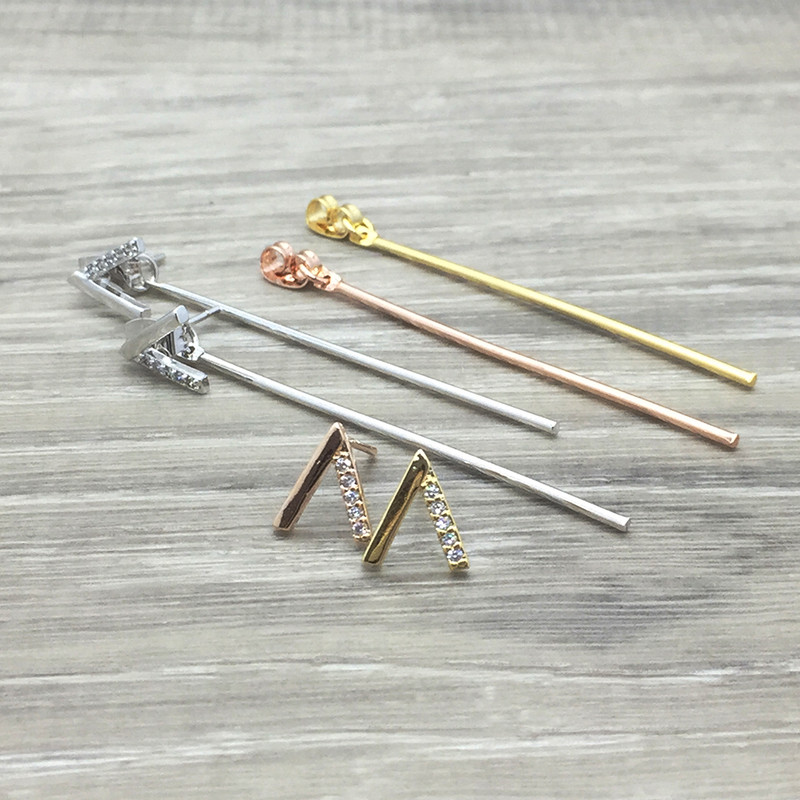 Description - Pave "V" ear jacket- Cubic stone- Plating on brass- .925 sterling silver posts- 55mm approx. Additional Details SKU: R-3E34