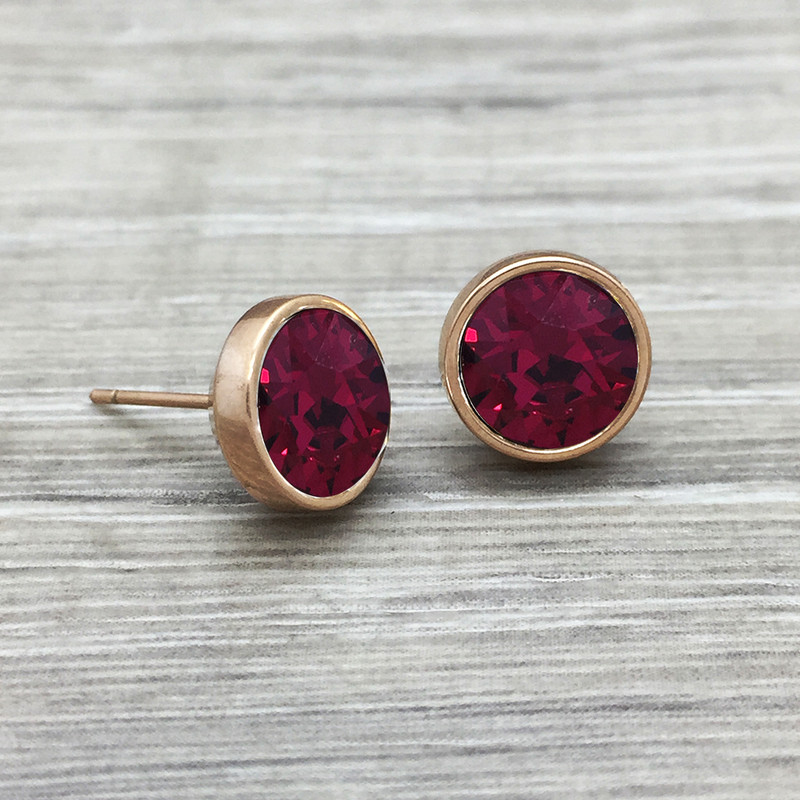 Description - Luxe Swarovski stud earring- Stainless steel- Hypoallergenic- 11mm approx. Additional Details SKU: R-3E64-RG-RUBY